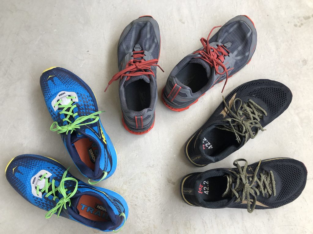 今回はHOKAのトレランシューズとアルトラのランニングシューズ、トレランシューズの3足の比較です。