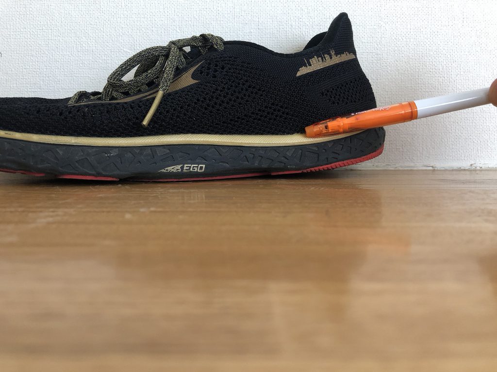 ALTRAのロードシューズでロードでのランニングが目的です。重心は地面から3cmと低めです。