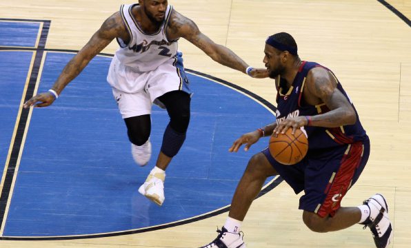 上写真はキングことレブロンジェームスのドリブルストップです。
