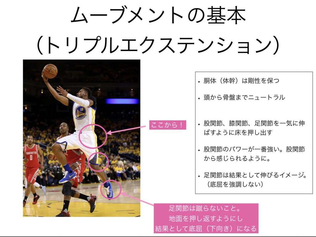 今回はバスケットの写真を引用して下半身の動きの基本について3回にわたってお伝えしました。