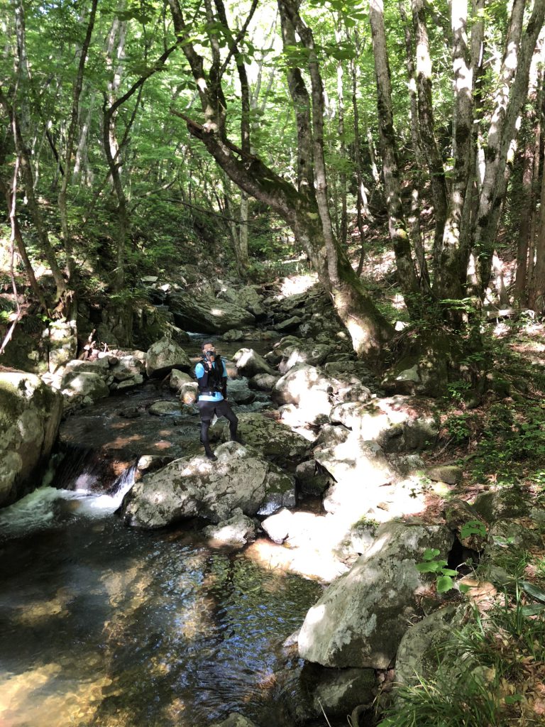 (Aループ後半の沢沿い。テクニカルなコースに油断するとドボンでしたw)