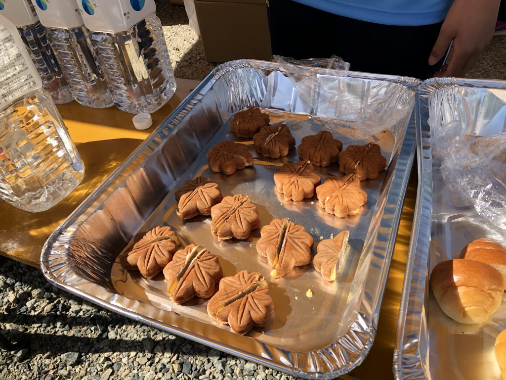 (エイドの補給食に広島ならではのもみじ饅頭が!あんことクリーム両方頂く。)