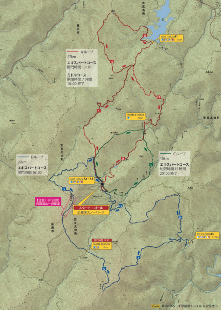 3つのコースをループするのでその都度補給や着替えも出来ます。
