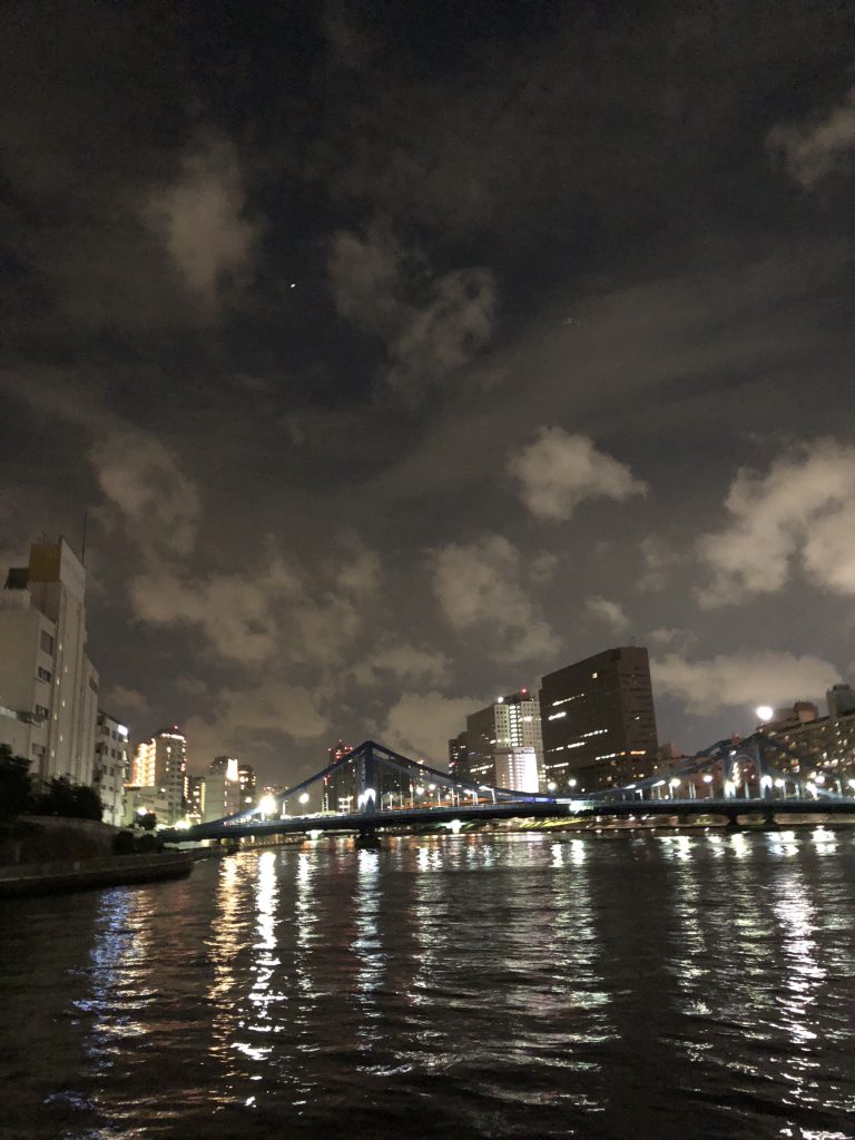 バタバタとワークショップのみの滞在でしたが、夜は隅田川沿いをランニング。