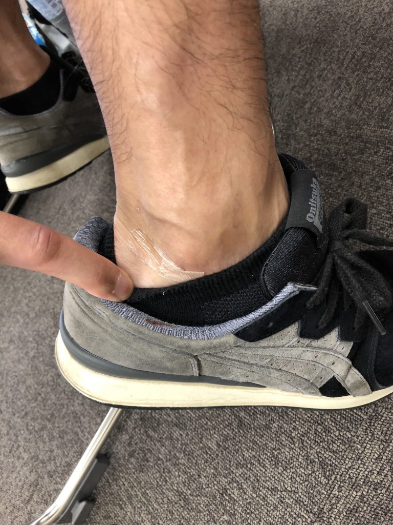 初日にペアの方の足首の筋膜を調整したところ翌日なんと靴擦れが!