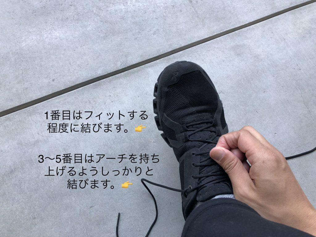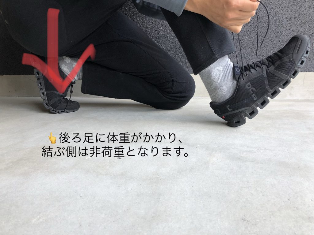 靴ひもは基本的に体重をかけない状態で結ぶということを覚えておきましょう。