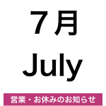 お知らせ2022年6月30日7月の営業日とお休みのお知らせ。
