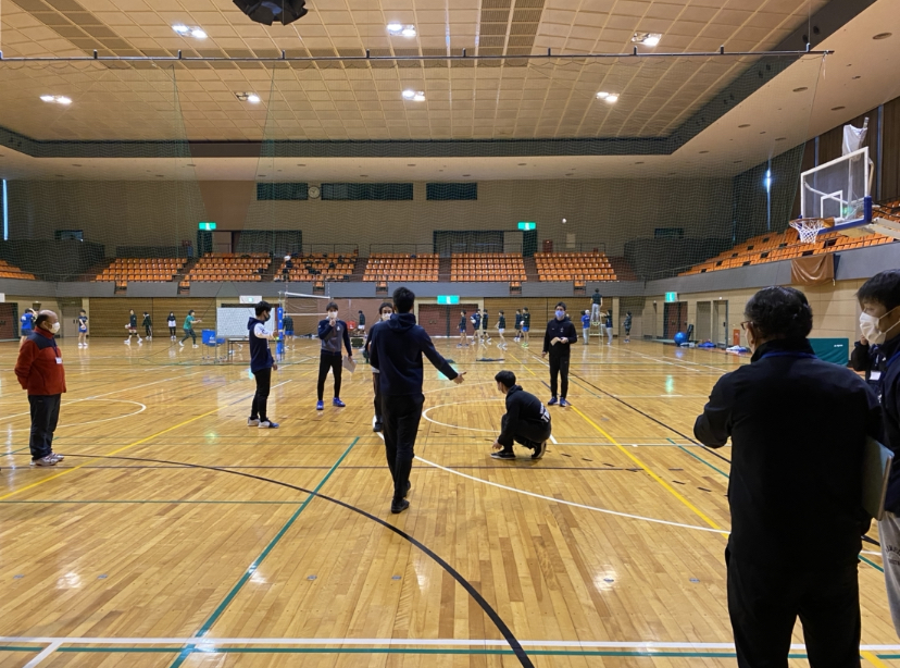 事前課題をグループで確認した後、体育館を使用してプレイヤーとコーチ役とに分かれて実践形式で行いました。